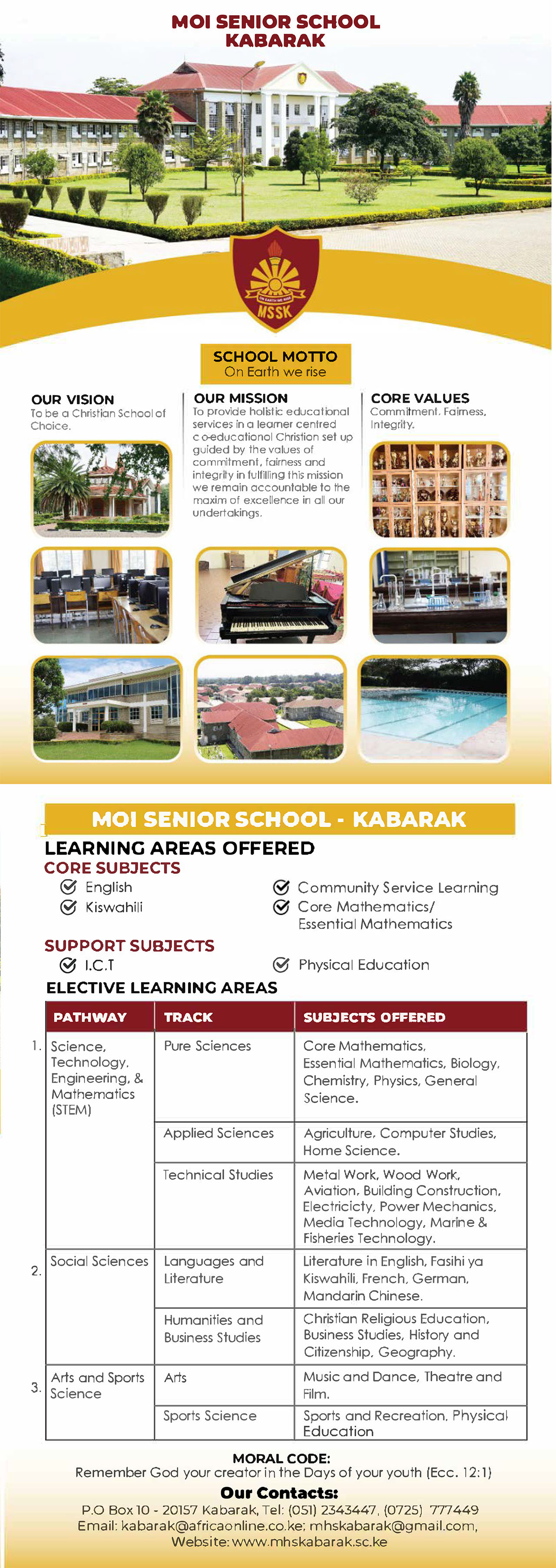 Moi Senior School - Kabarak Moi High School Kabarak Category: School Notice Board 04 December 2025 Hits: 206 Rating: ( 1 Rating ) User Rating: 5 / 5 Please Rate Vote 1 Vote 2 Vote 3 Vote 4 Vote 5 >> Download MHS Kabarak Senior School